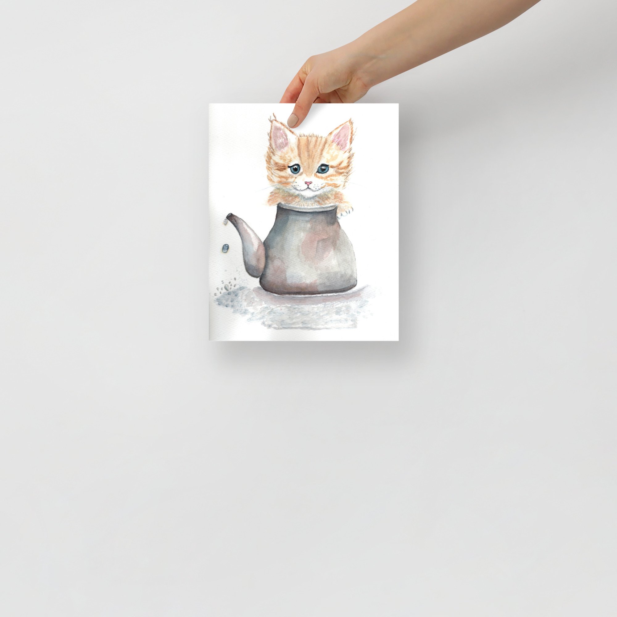 A print from my own original watercolour painting. Cute Kitten in a Teapot
