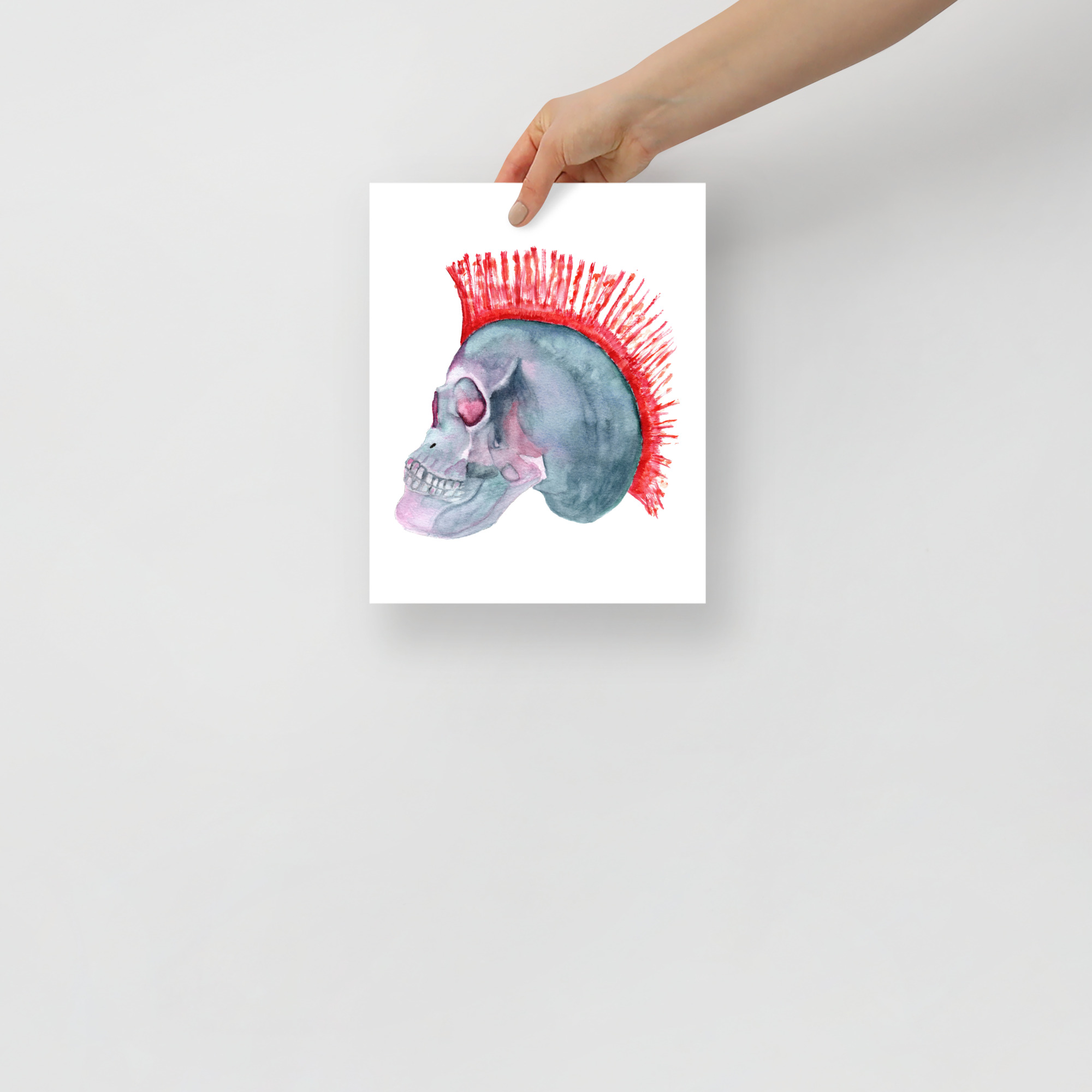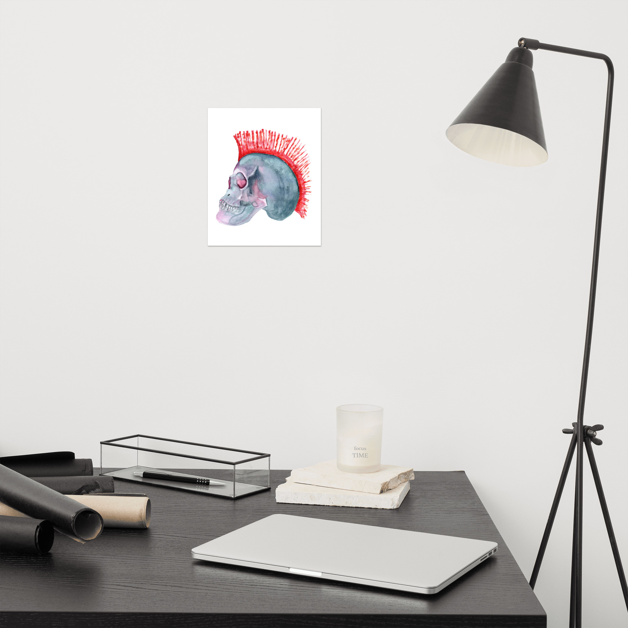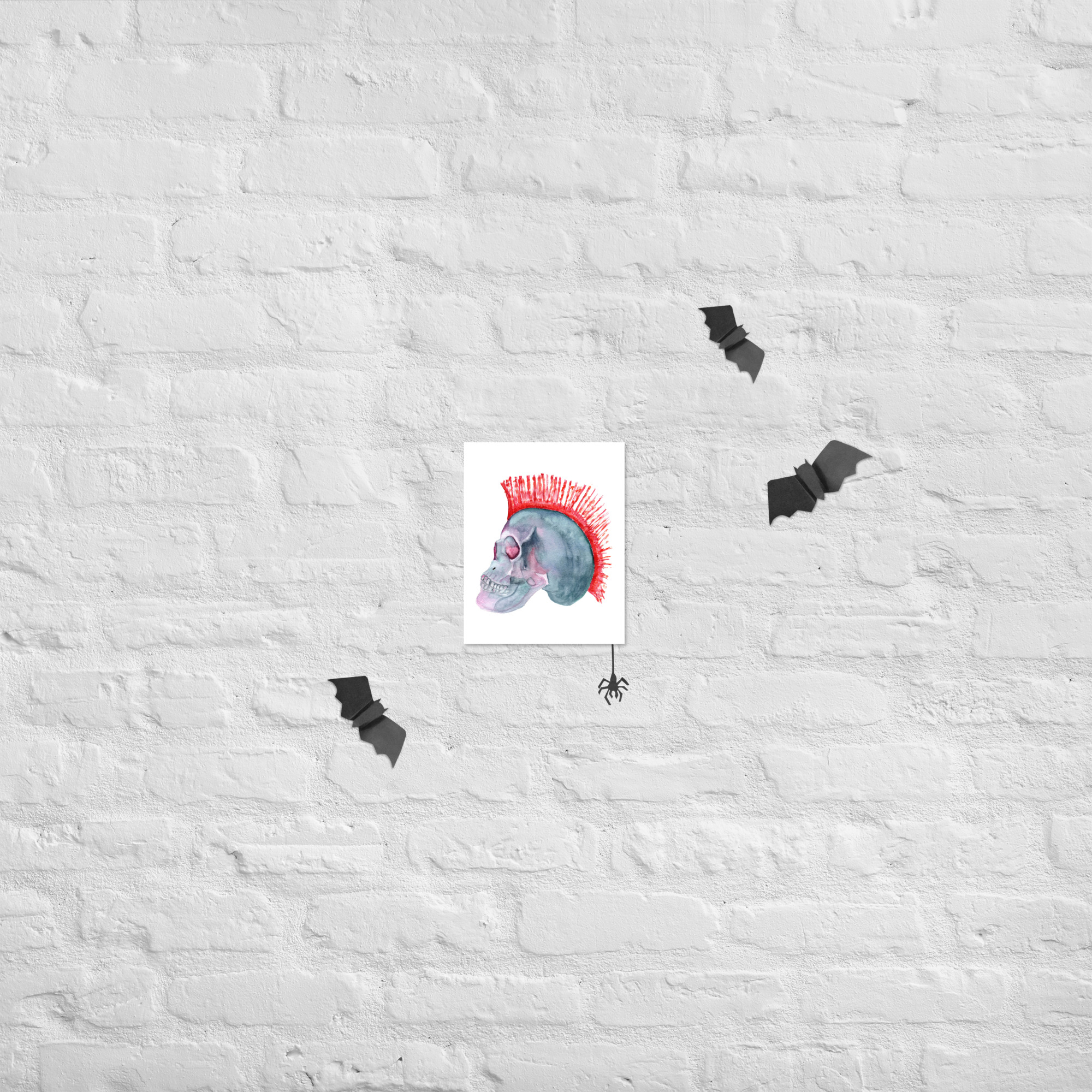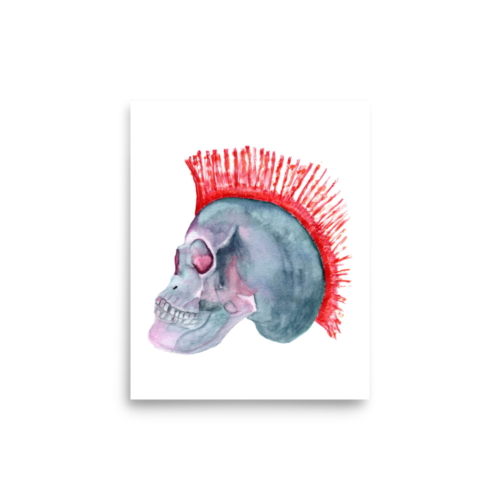 Brightly coloured Poster. Mowhawk Skull by Shelley