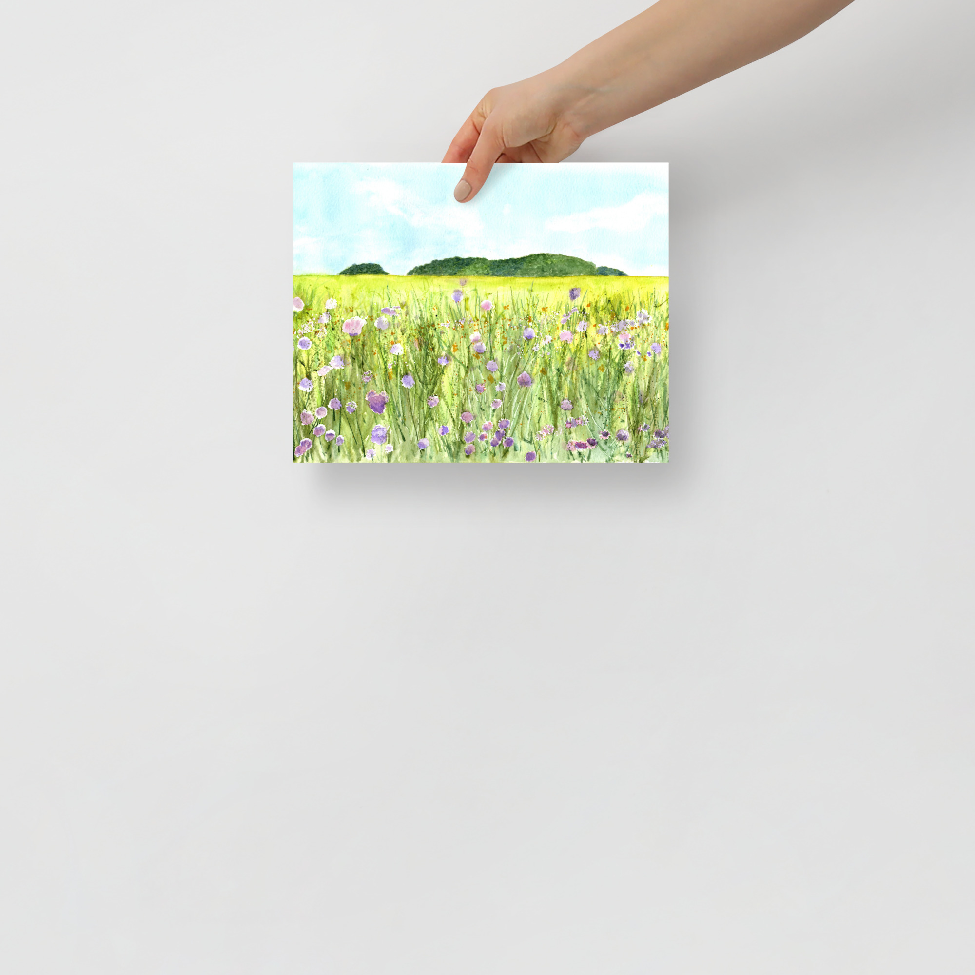 A print from my own original watercolour painting of a lovely English meadow. A beautiful field of flowers.